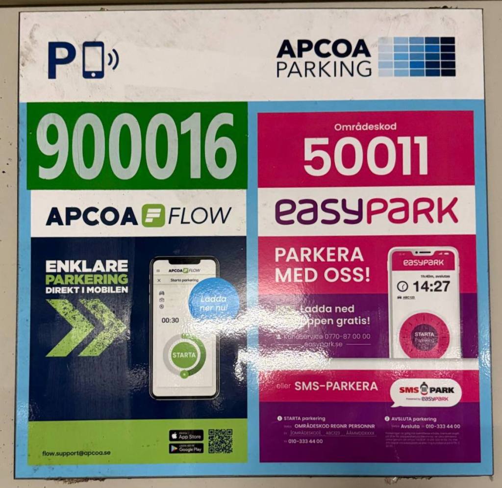 Parking is available on Level 0 and Level 1 at a rate of 15 kr per hour. For your convenience, payment can be made via the EasyPark or APCOA apps. Kindly ensure that you do not park in spaces reserved for companies such as SATS.